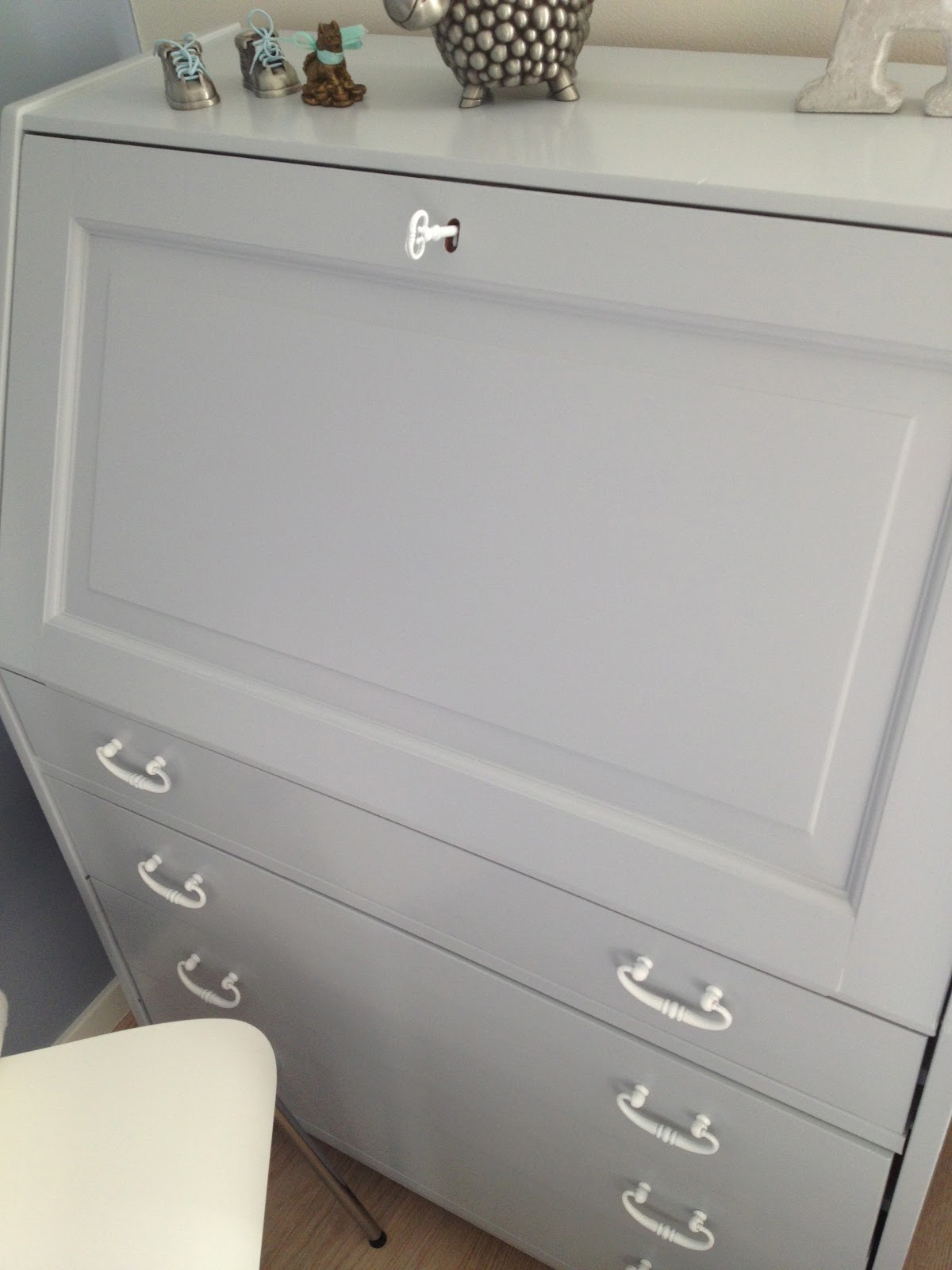 Nå er det kommet på rommet til lillegutt.Det var i sin tid kjøpt på Ikea. Valgte å male det i en lys grå farge som heter fabrikk fra jotun.